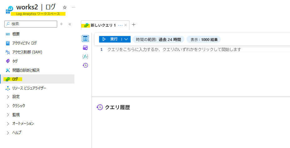 リソース コンテキストで Log Analytics ワークスペースにアクセスする場合は以下の通りです。