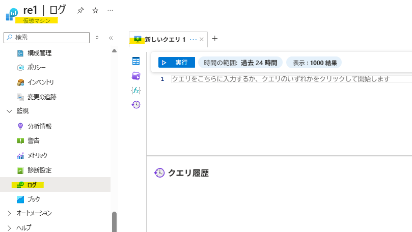 リソース (例. 仮想マシン) の画面左側メニューにある [ログ] メニューより Log Analytics ワークスペースにアクセスしてログを確認することを指します。