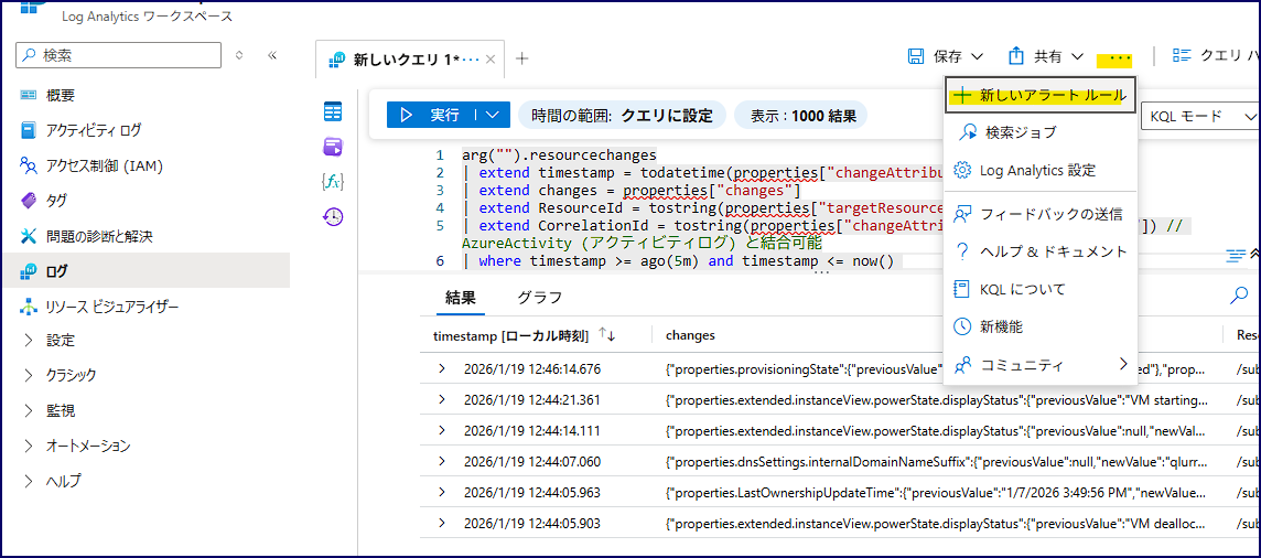今回はリソース変更を検知するアラートが作成できる様になりましたので、その設定方法やサンプルクエリを紹介させていただきます。