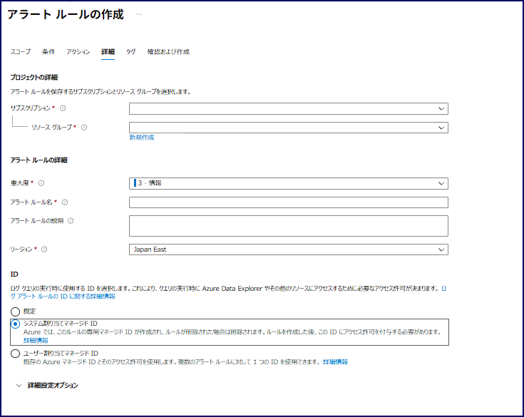 - “新しいアラート ルール” より アラートルールの作成画面へ移動します。