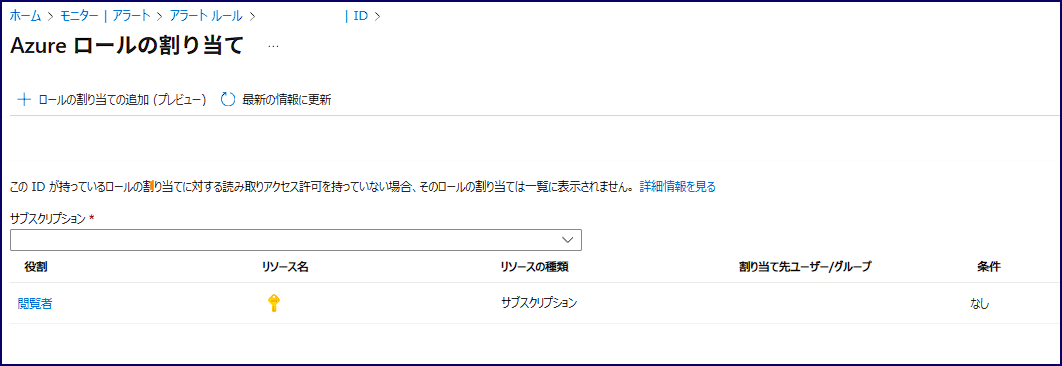 Azure ロールの割り当て へ進み、サブスクリプションスコープの閲覧者権限を付与します。